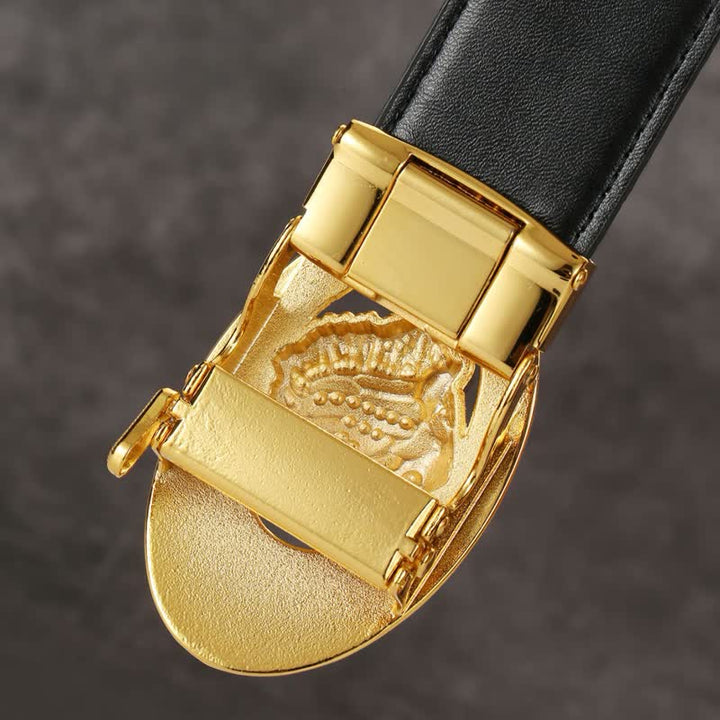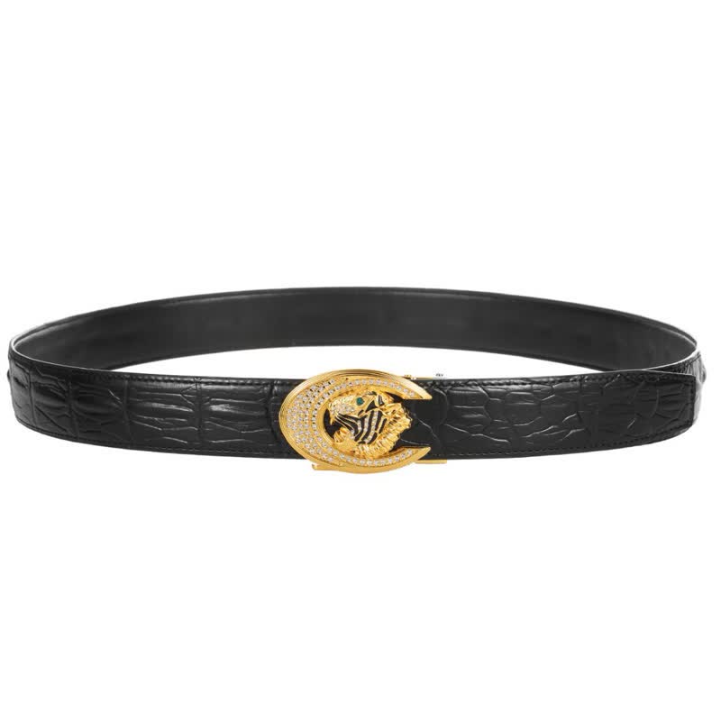 - Un cinturón brillante y atemporal con hebilla con diseño de cabeza de tigre es tu mejor opción si quieres mostrar más tu encanto.