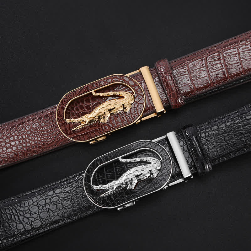 Cinturón de piel con hebilla automática de cocodrilo calado para hombre