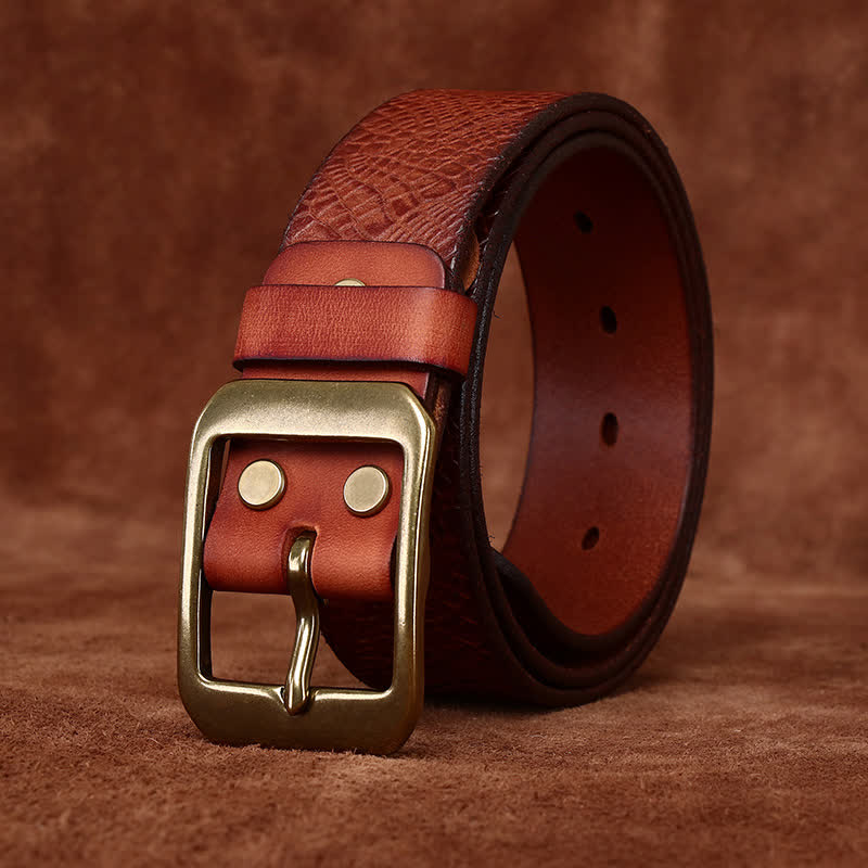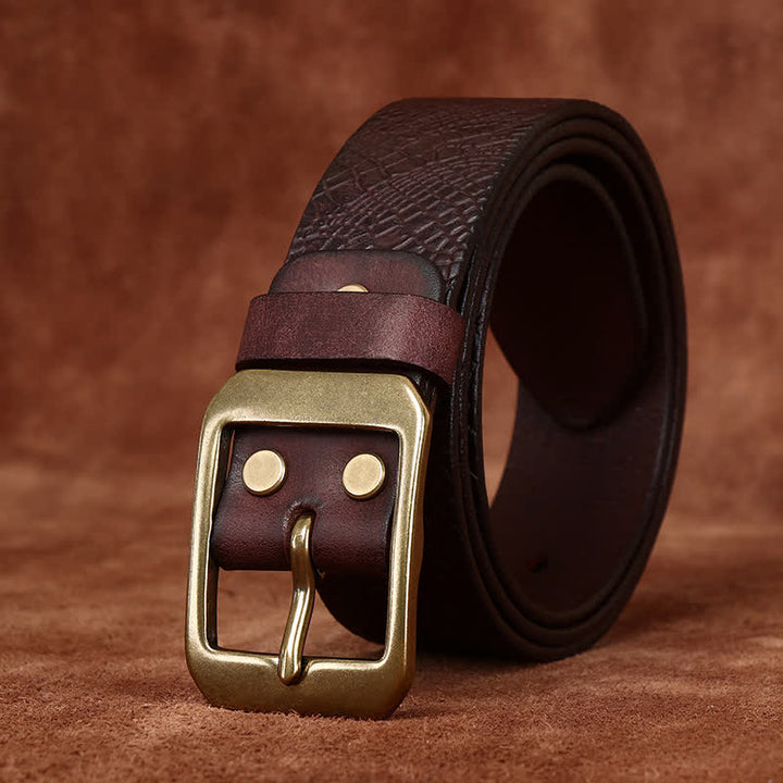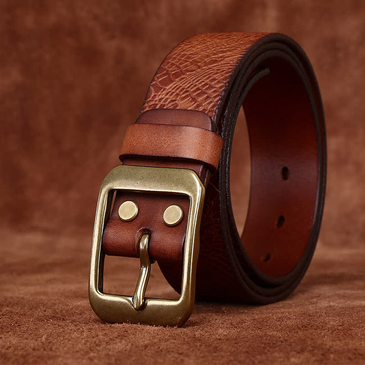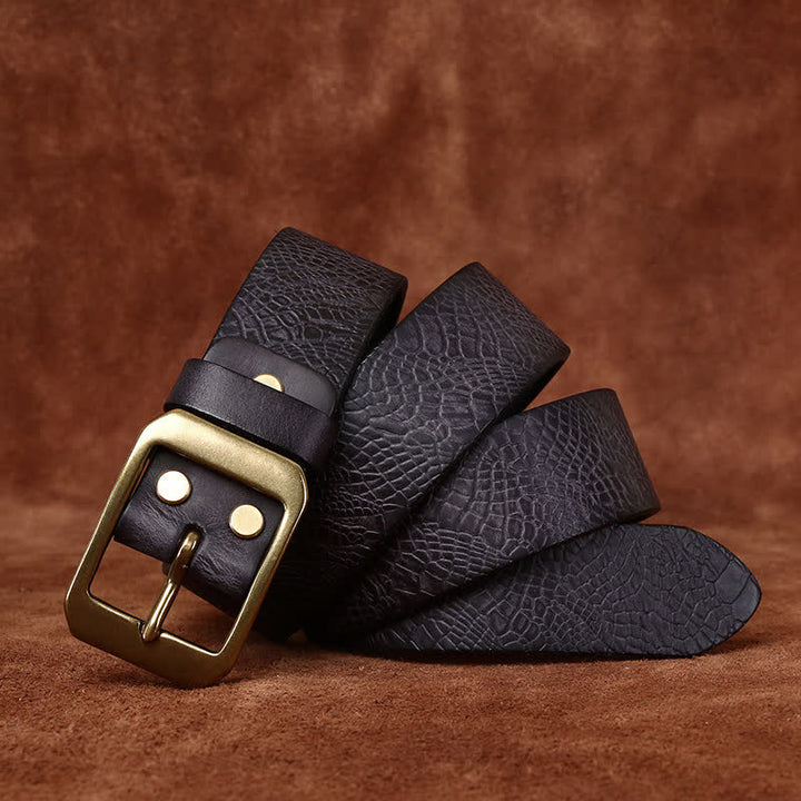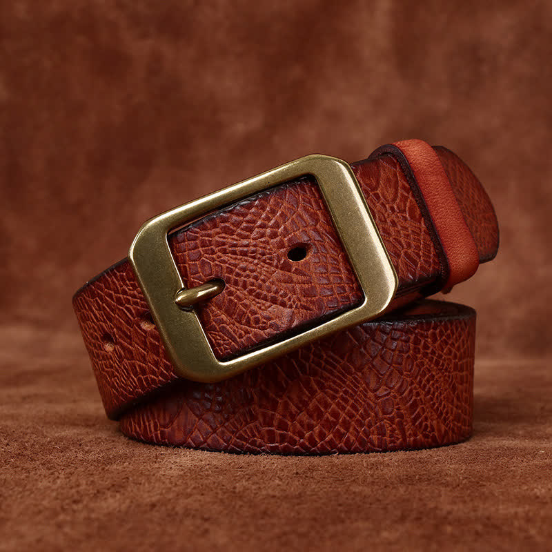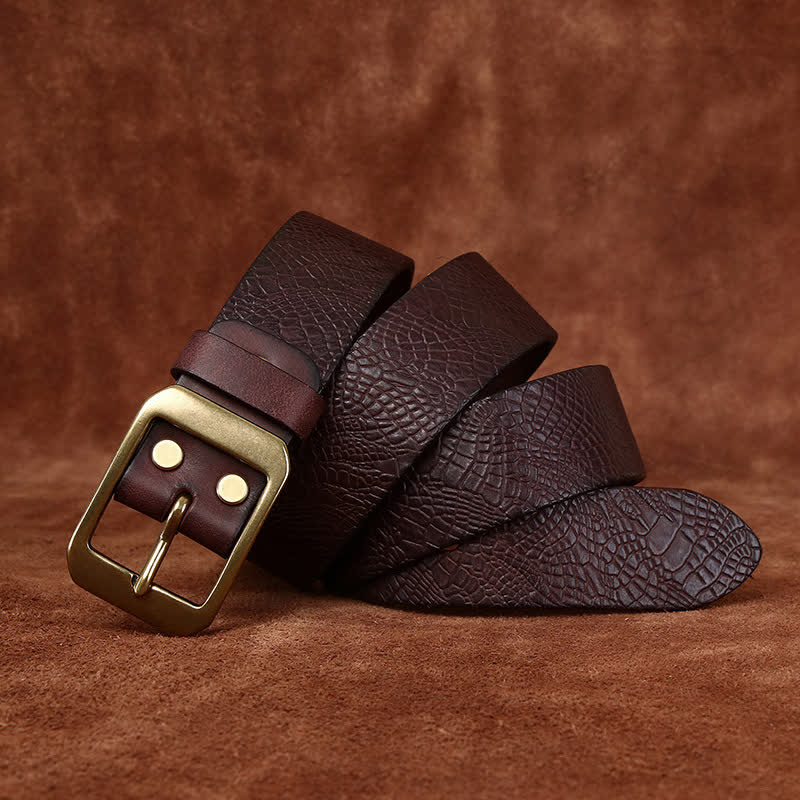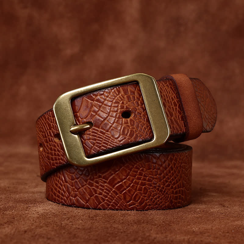 Este cinturón para hombre de excelente calidad tiene una hebilla retro y estampado de cocodrilo, y es perfecto para tus jeans o pantalones caqui. Muy bien construido y duradero, le da un aspecto vintage.