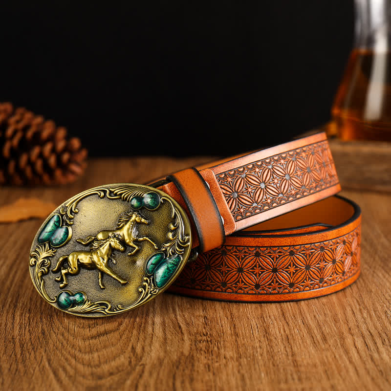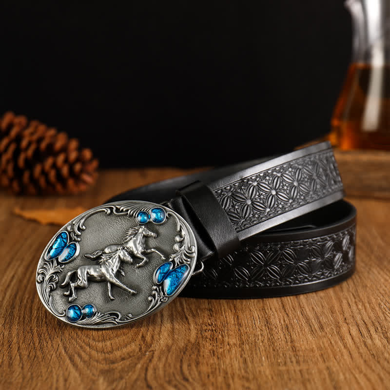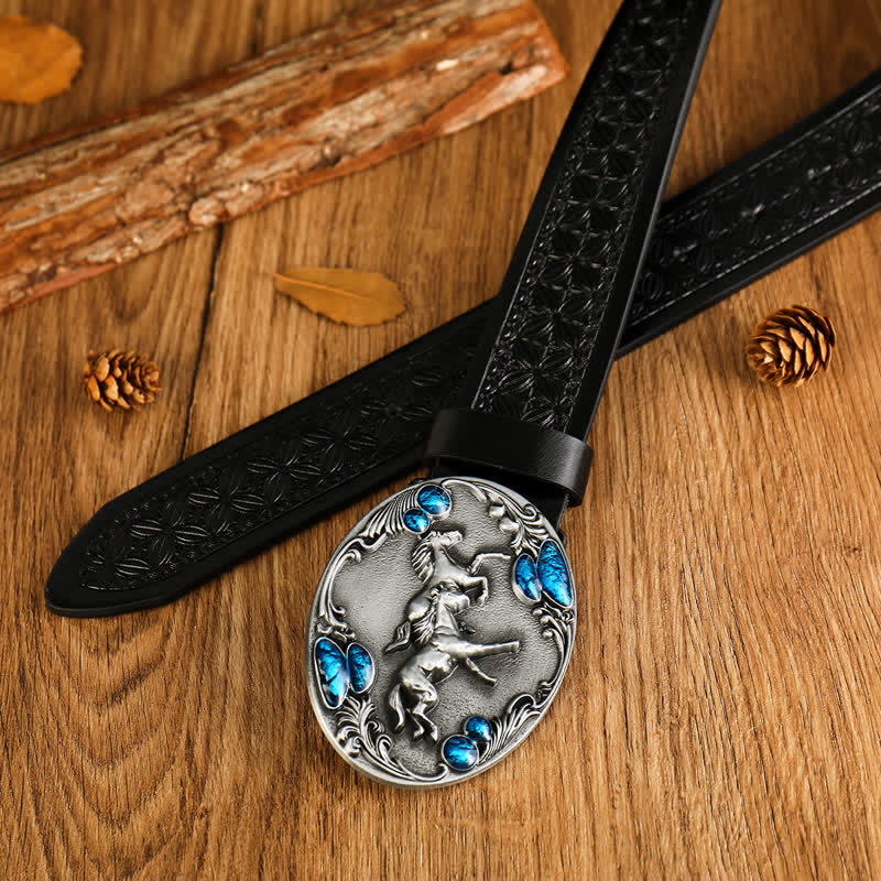 La intrincada hebilla de doble caballo con diseño de decoración de gemas falsas irradia autenticidad y atractivo vintage, mostrando su estilo personal y confianza, agregará un toque encantador a cualquier atuendo.