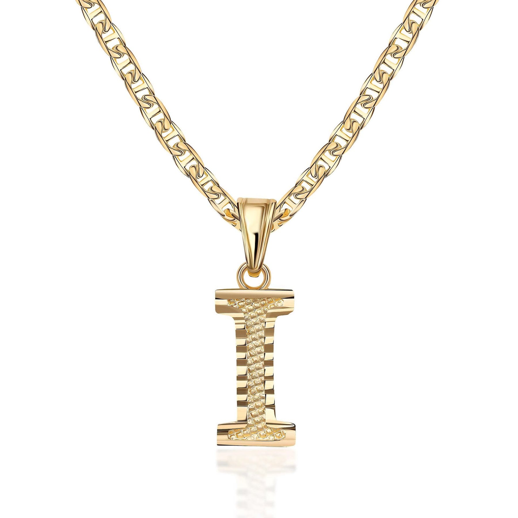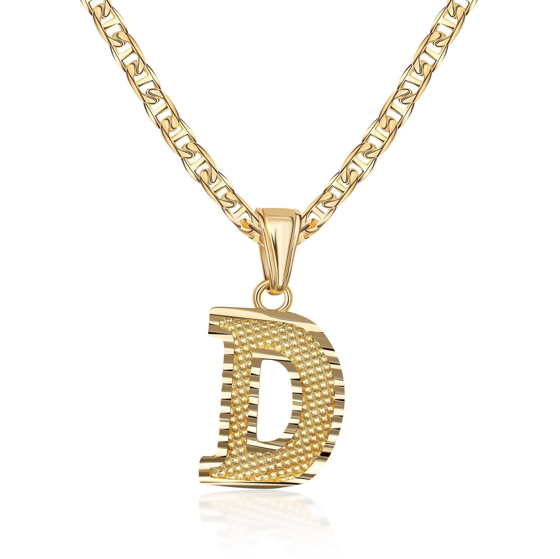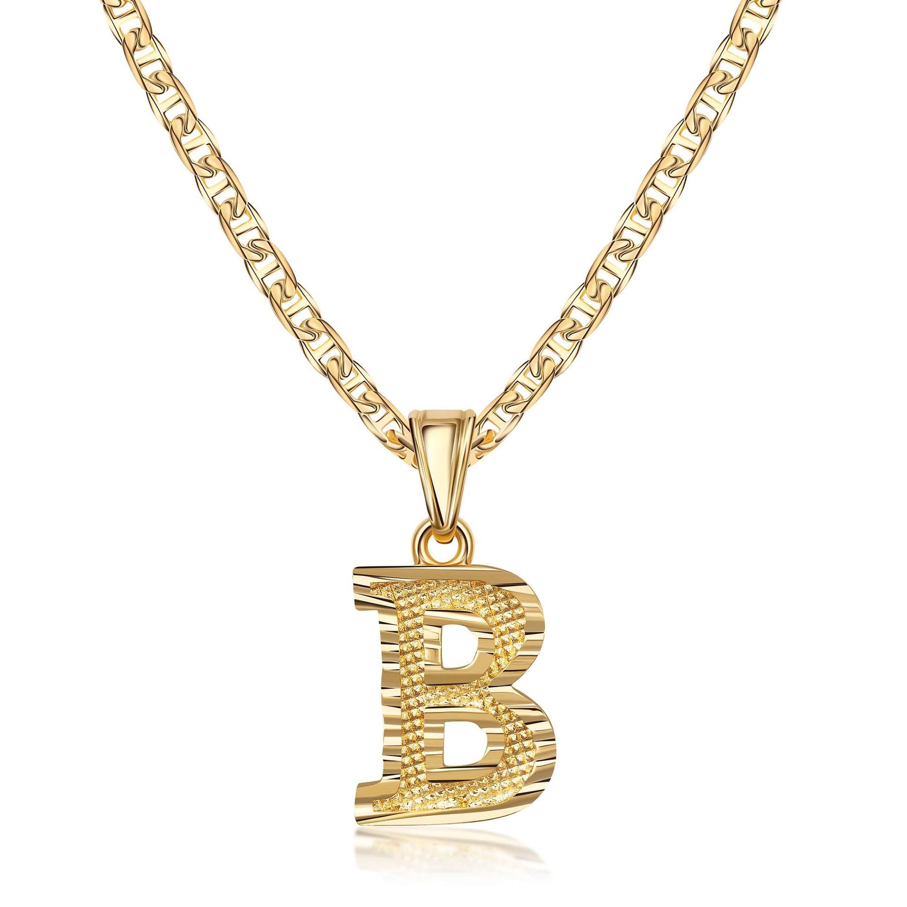 - Este sencillo y noble collar colgante con letra dorada presenta un colgante inicial meticulosamente elaborado en una fuente elegante y moderna, suspendido de una delicada cadena dorada.