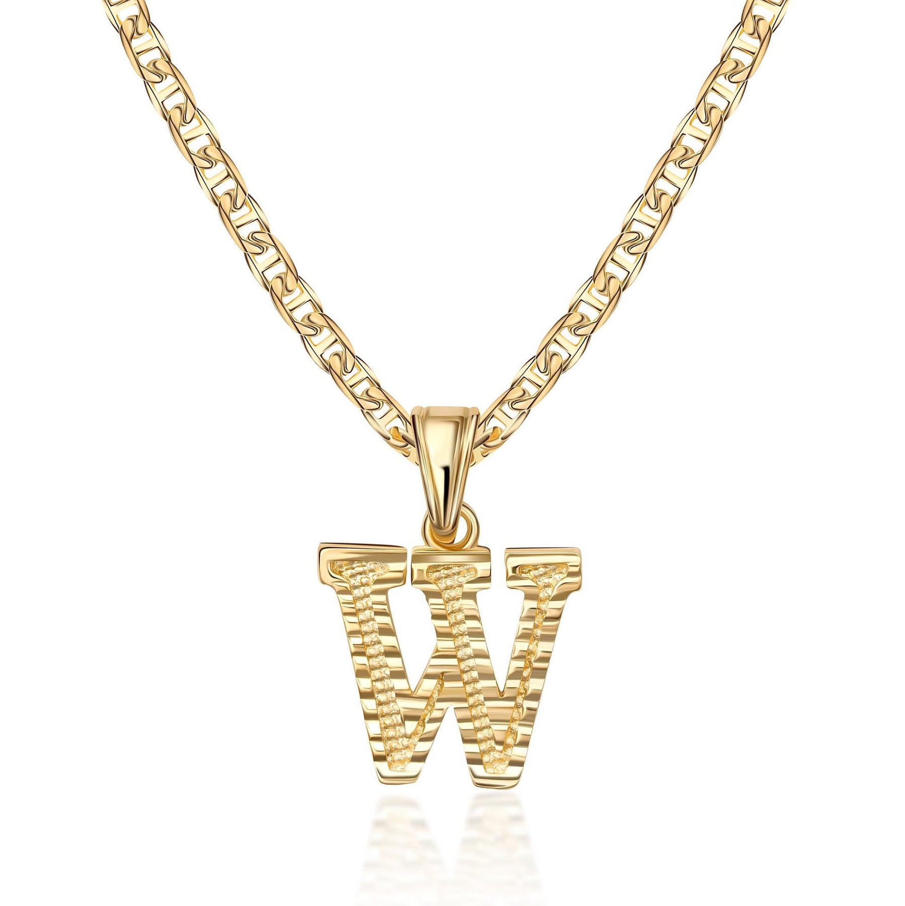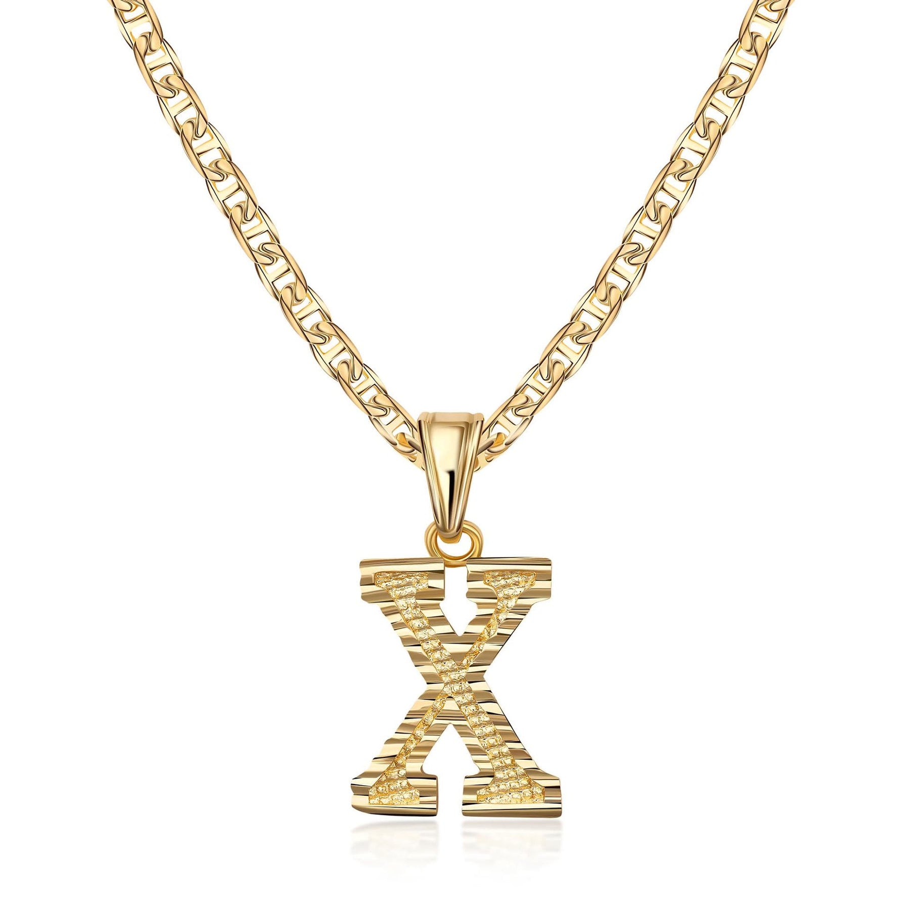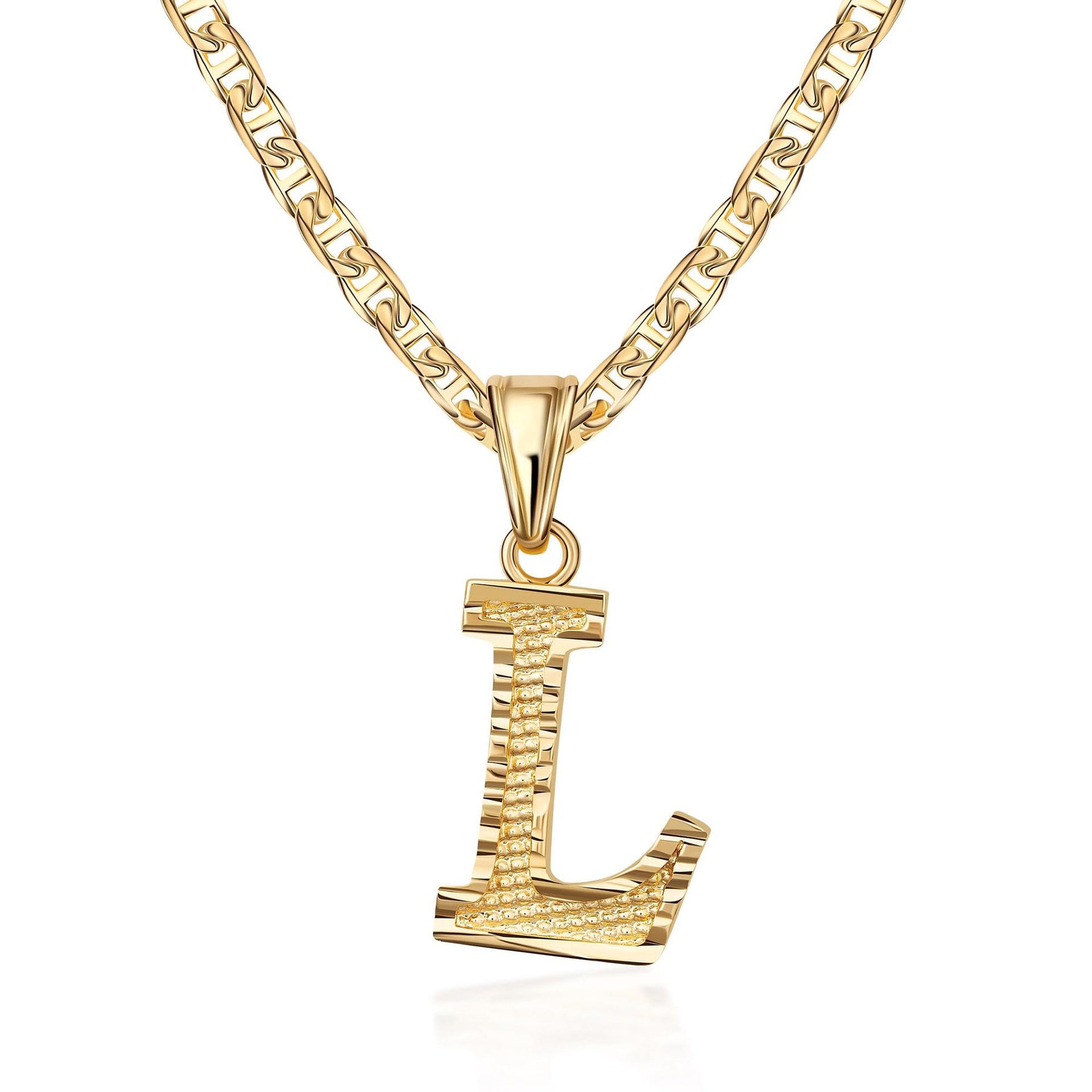 - Este sencillo y noble collar colgante con letra dorada presenta un colgante inicial meticulosamente elaborado en una fuente elegante y moderna, suspendido de una delicada cadena dorada.
