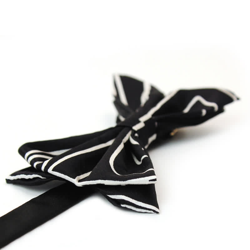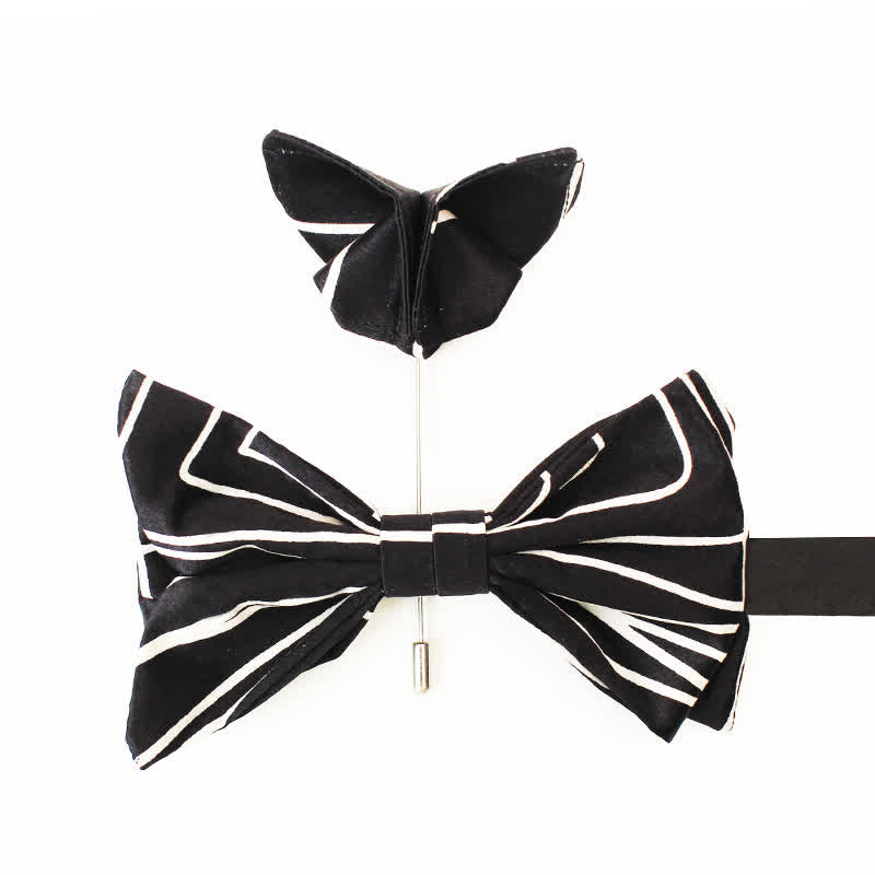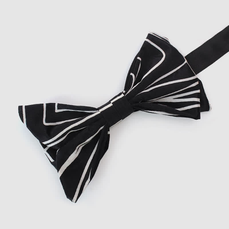 - La pajarita tiene un detalle de líneas geométricas blancas de una finura deslumbrante.