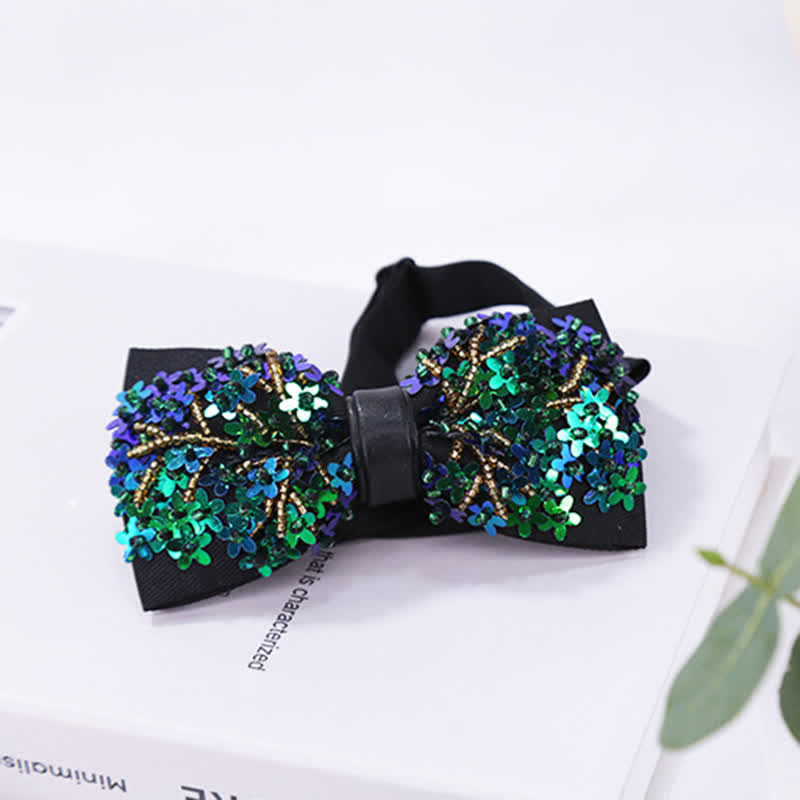 - Prepare el escenario para la sofisticación con nuestra pajarita negra, adornada con intrincadas lentejuelas cortadas a láser en forma de flor.