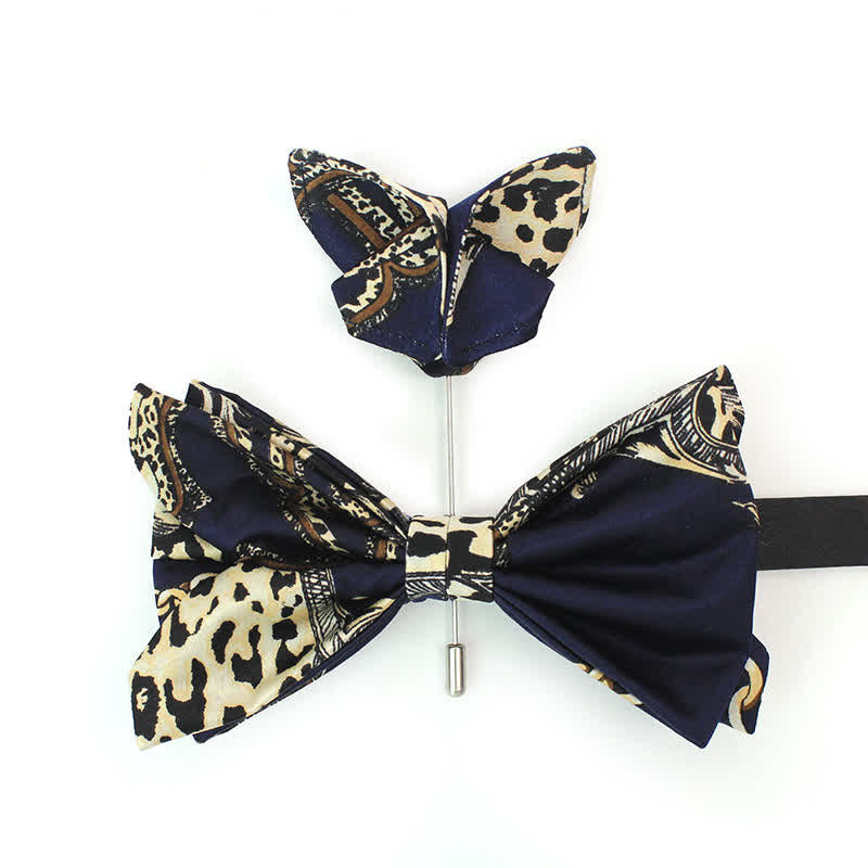 - Esta sofisticada pajarita está diseñada con un patrón azul marino y beige para darle un toque de lujo.
