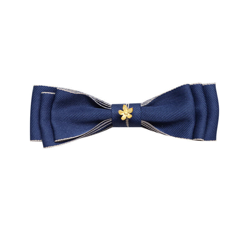 - El centro de la corbata está decorado con una flor dorada, delicada y hermosa.