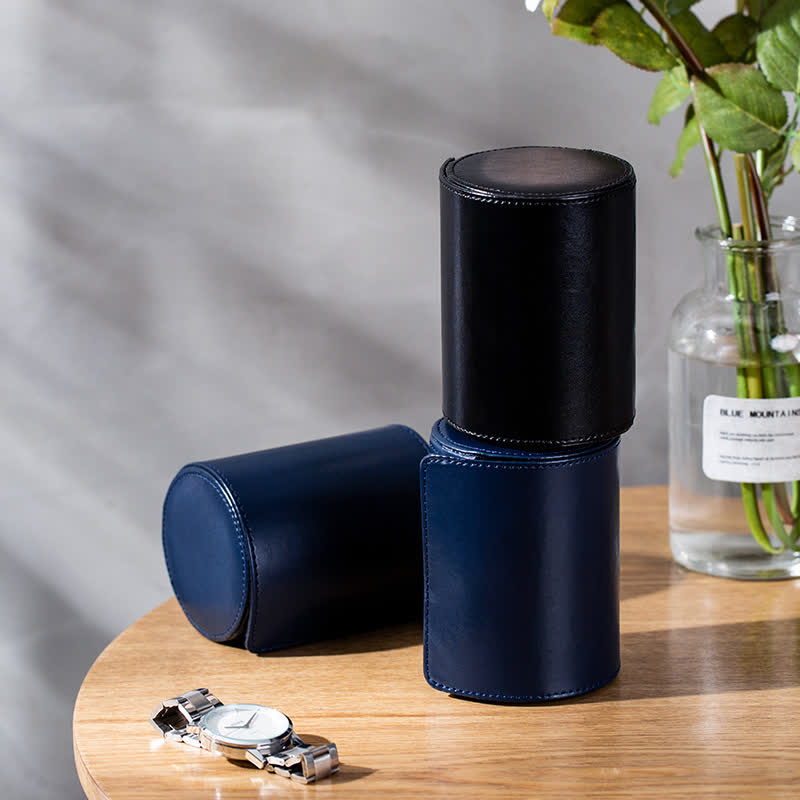 Estuche de cuero con hebilla magnética para corbata redonda negra