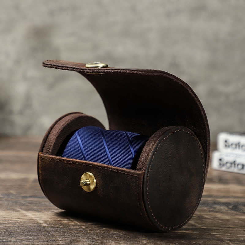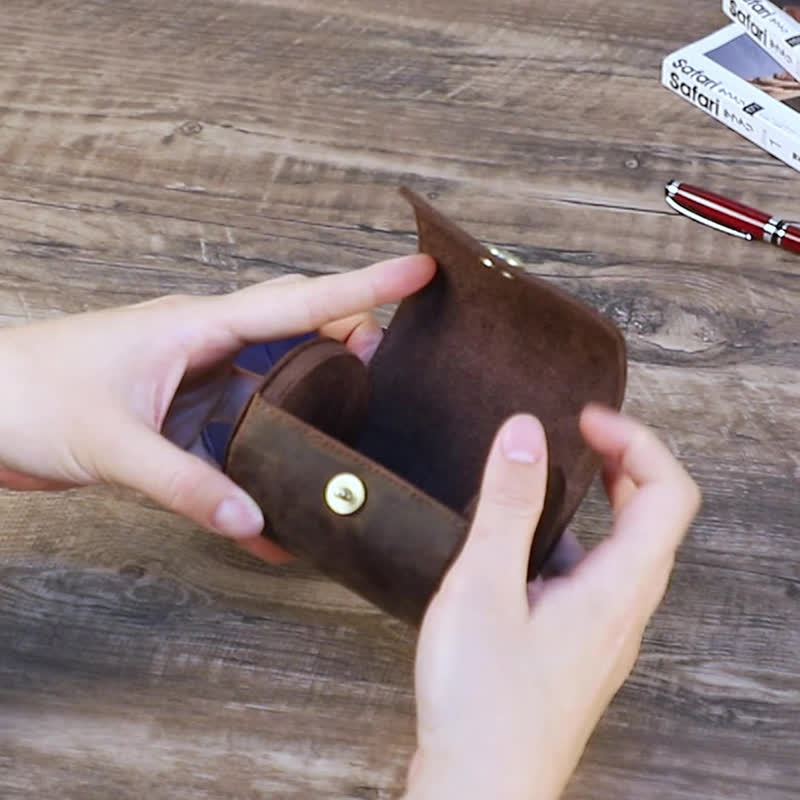 Funda de cuero con remaches de león y correa de retención para cinturón