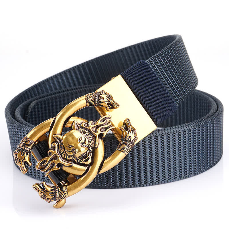 Cinturón de nailon con diseño de lobos feroces en llamas para hombre