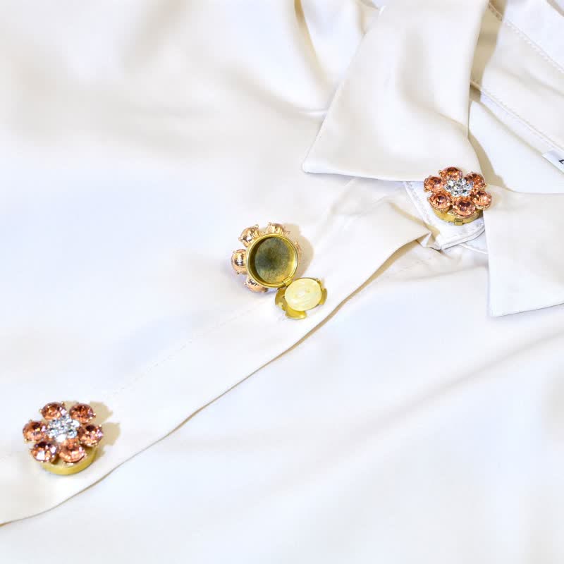 1 par de cubiertas de botones de camisa a presión con diamantes de imitación y flores de cristal