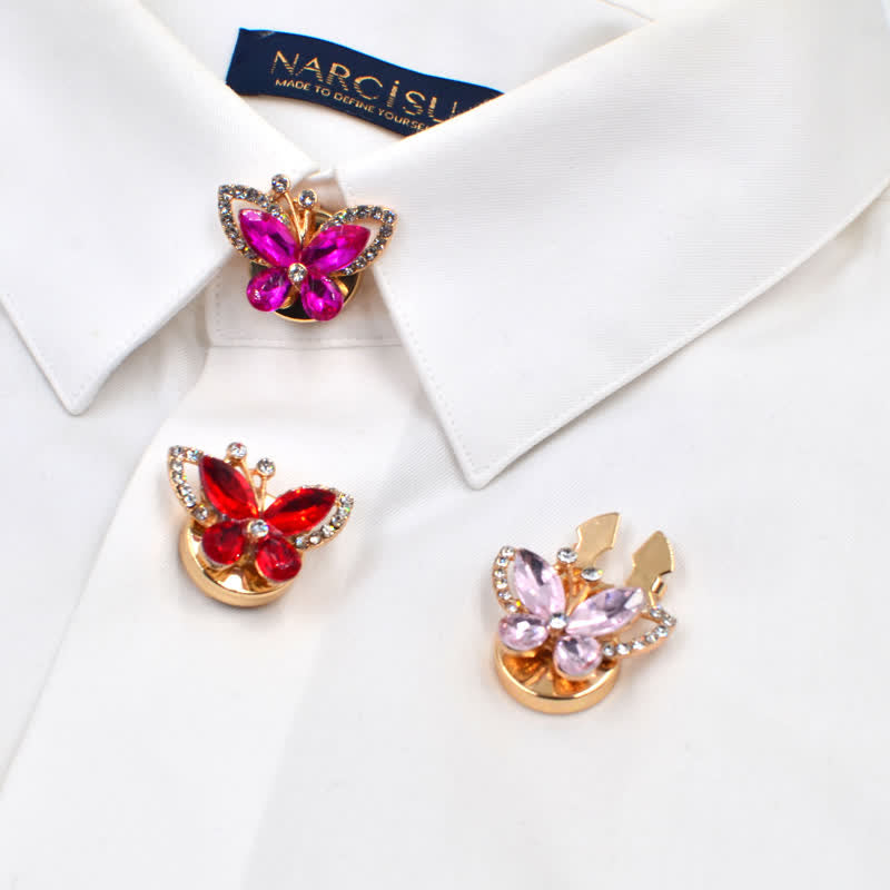 1 par de cubiertas de botones de camisa a presión con forma de mariposa y cristales de estrás