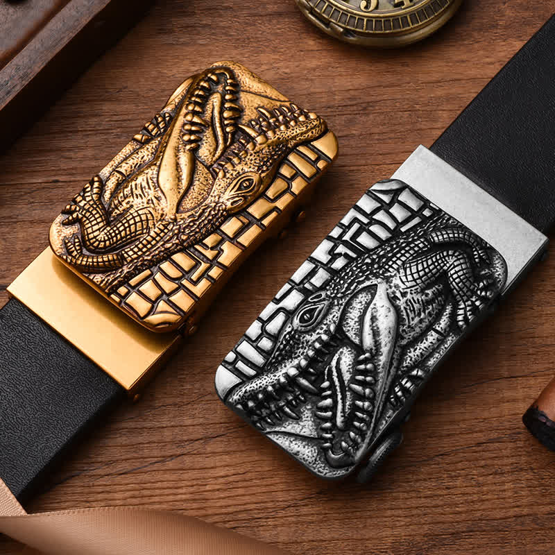 Cinturón formal automático de piel de cocodrilo con diseño dominante para hombre