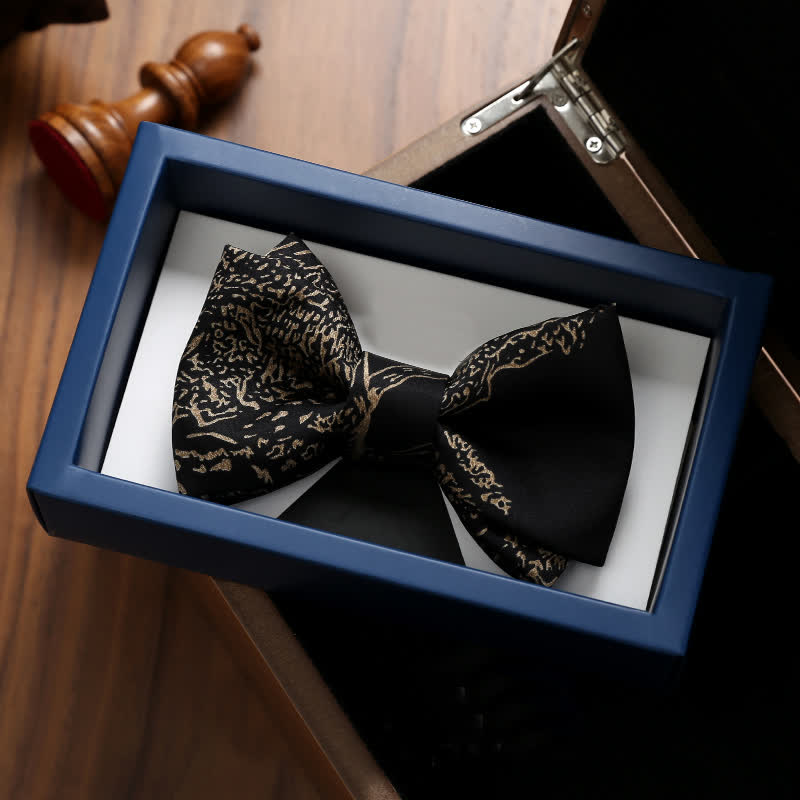 Pajarita de novio de boda negra con pintura dorada para hombre