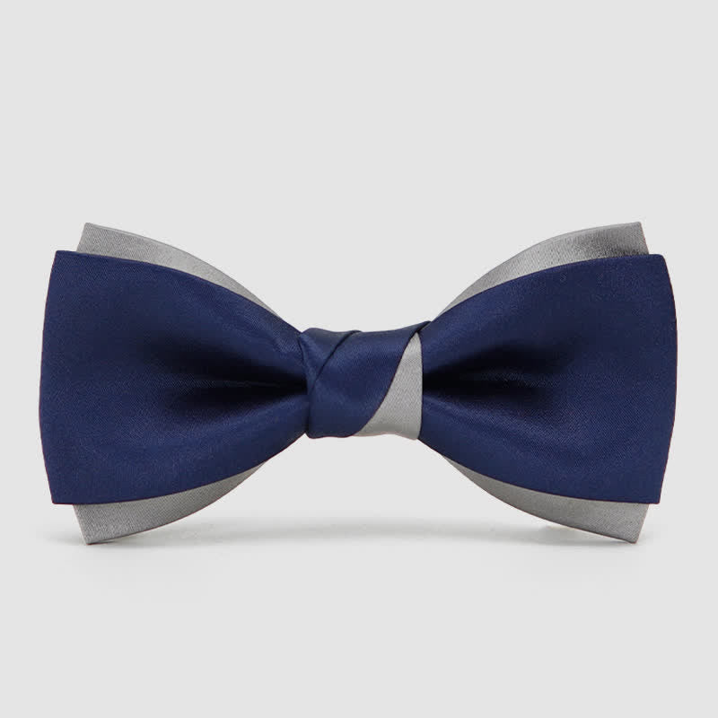 Pajarita de doble capa en azul marino y plata noble para hombre