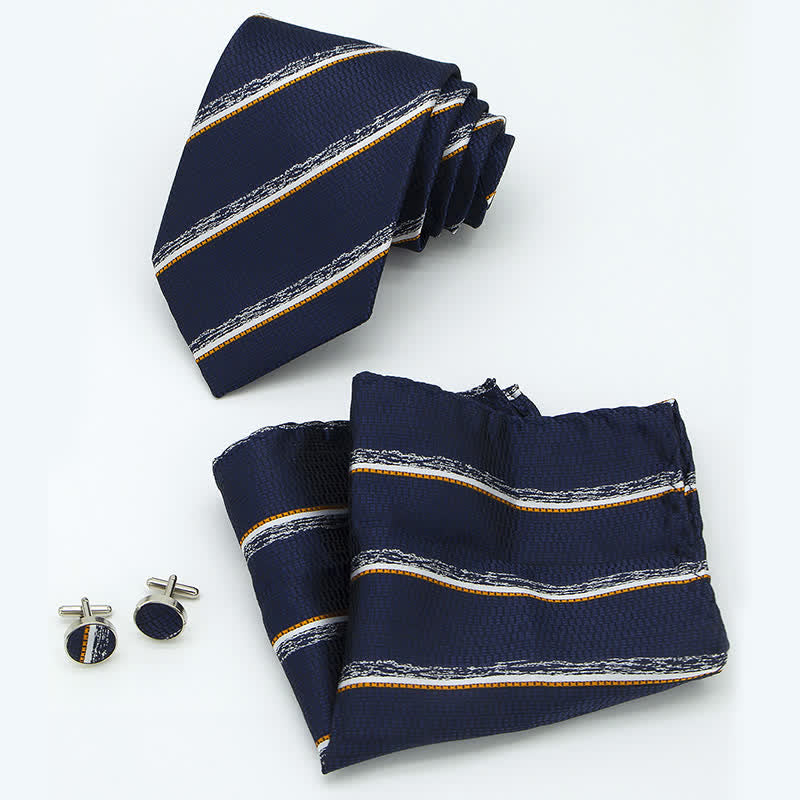 - Tamaño del artículo: Corbata: 59,06'' x 3,35'' (150 x 8,5 cm), Pañuelo de bolsillo: 9,84” x 9,84” (25 x 25 cm), Gemelos: Diámetro: 0,59” (1,5 cm)