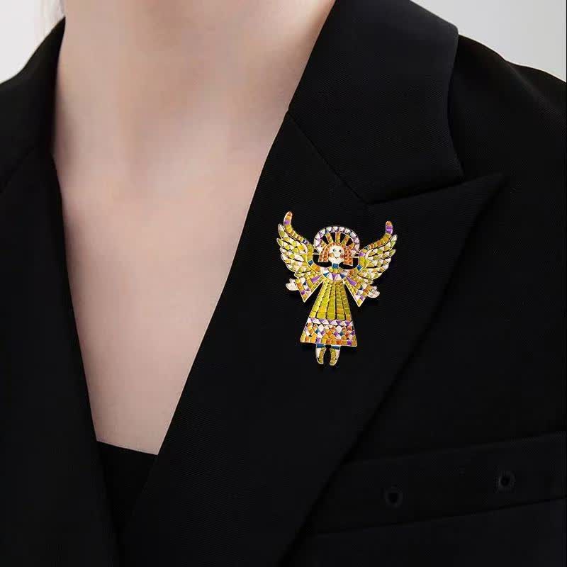 - Con un diseño de hada caprichoso con alas de ángel fuera de lugar, este broche es una pieza única.