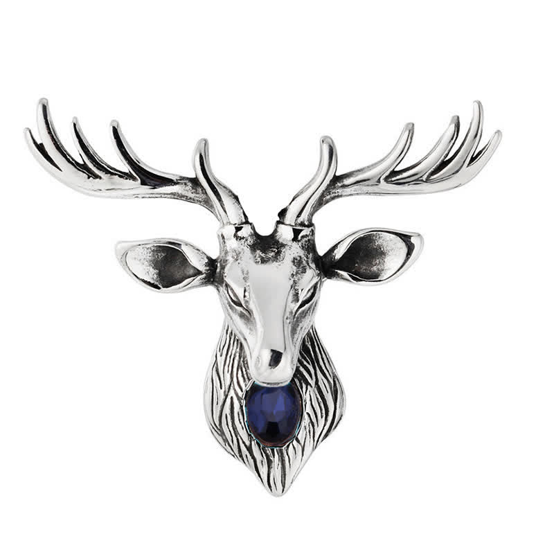 - Este impresionante diseño de ciervo tiene un acabado muy pulido con efecto envejecido para resaltar los detalles, tiene un cristal azul montado en el cofre.