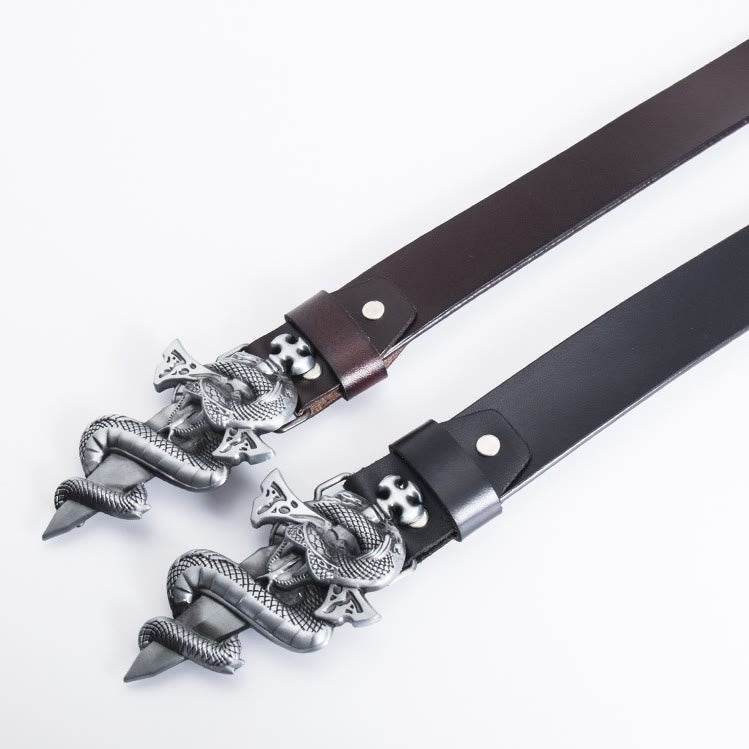 Cinturón estilo punk con hebilla de serpiente y espada, cómodo y suave, adecuado para ropa casual de hombre, se ve increíble con cualquier atuendo, fresco e impresionante.