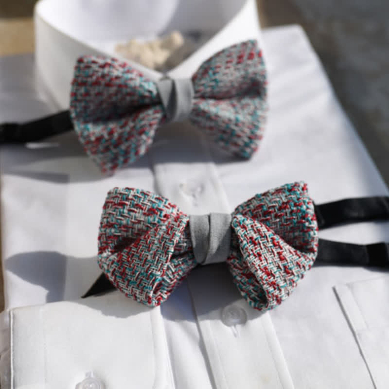 • Impresionante pajarita tejida en varios colores. Le da un toque rústico a cualquier atuendo.