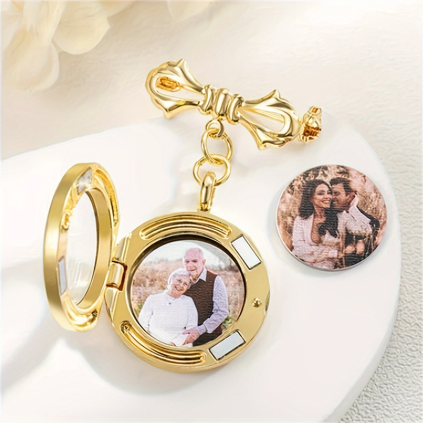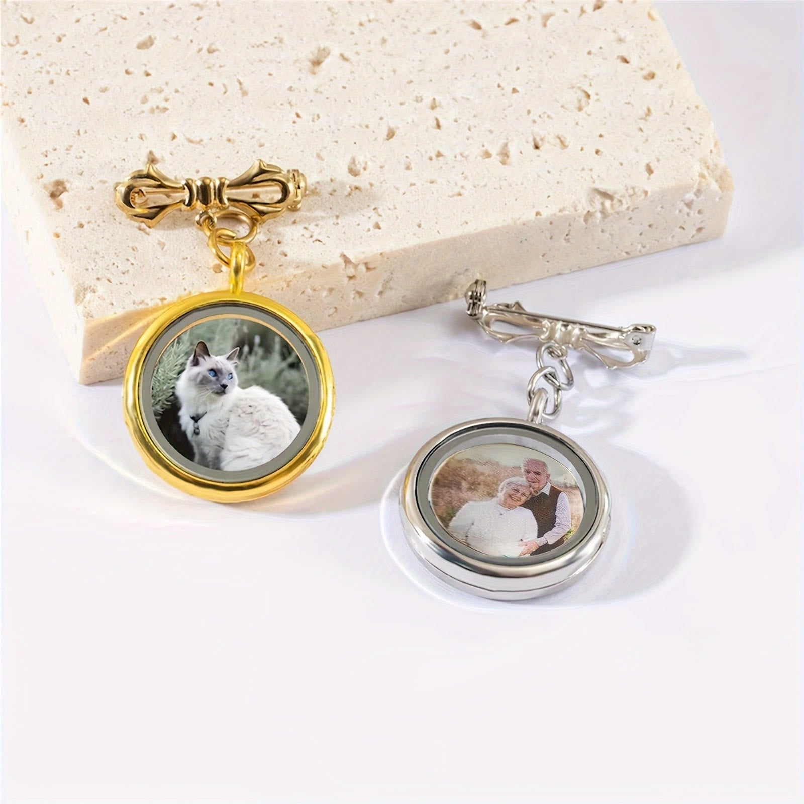 • Este broche con fotografía personalizado combina el encanto vintage con un toque moderno.