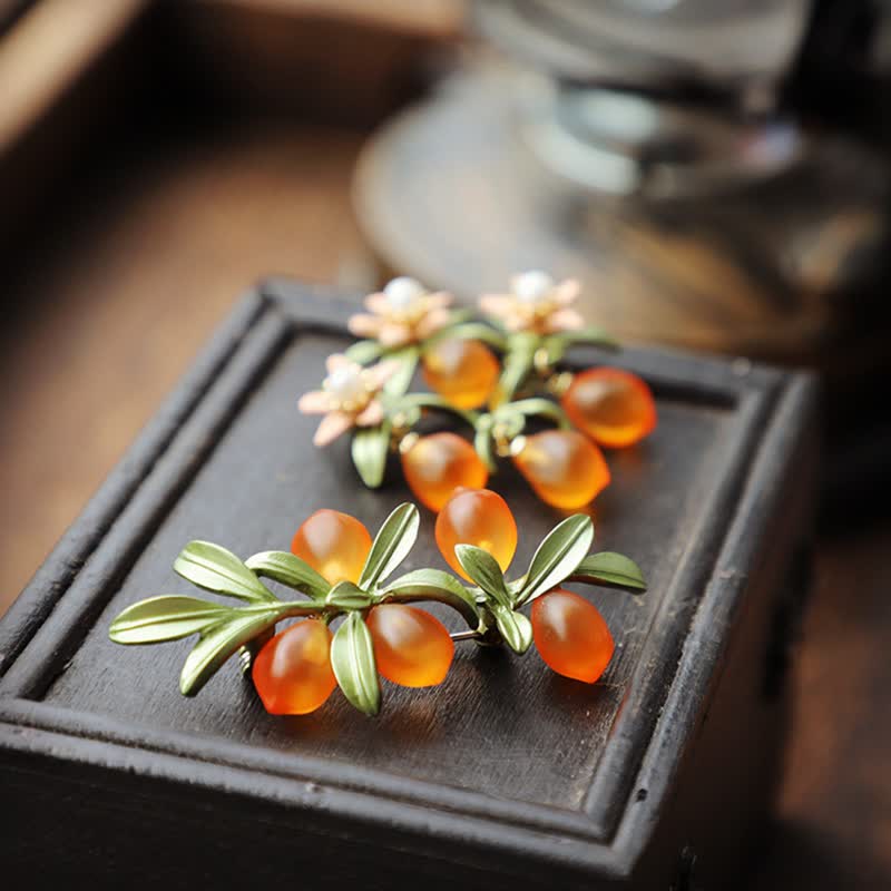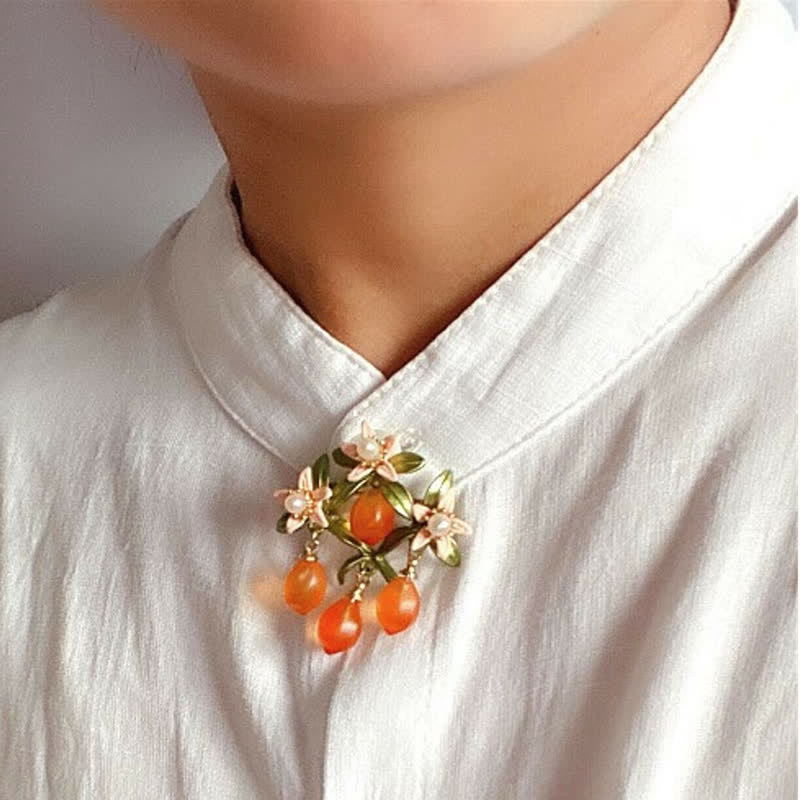 • Con pequeñas bayas y flores de color naranja, te enamorarás del ambiente primaveral que trae consigo el broche.