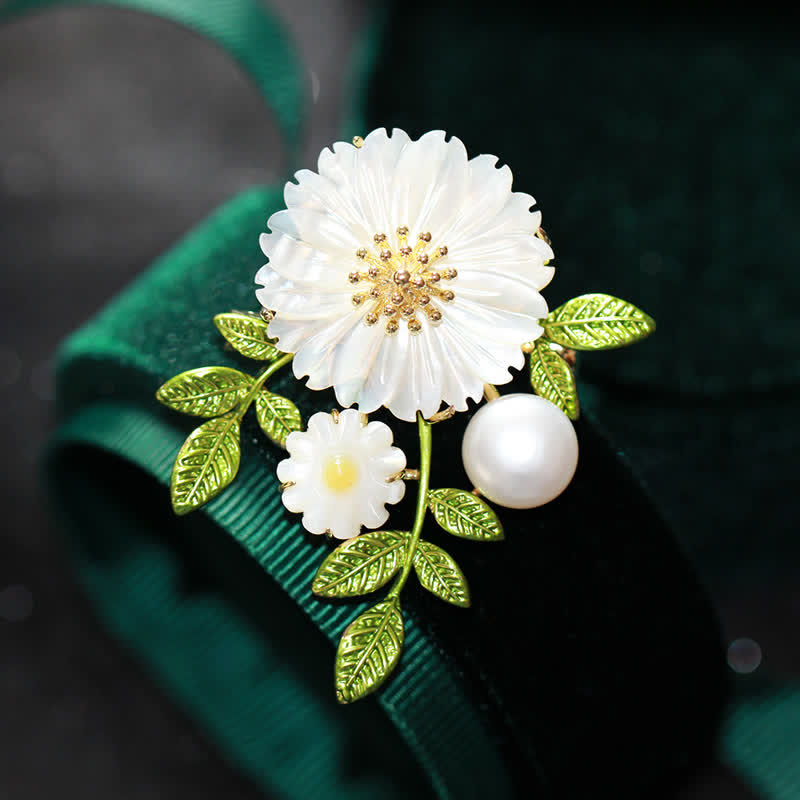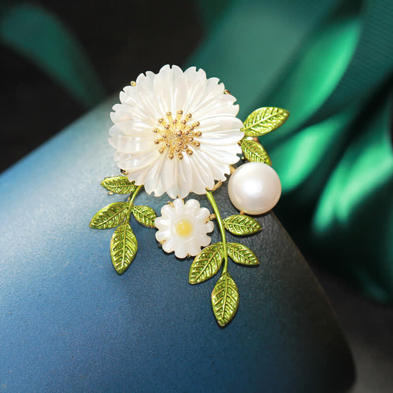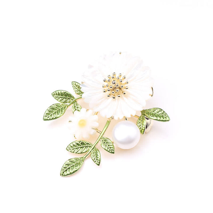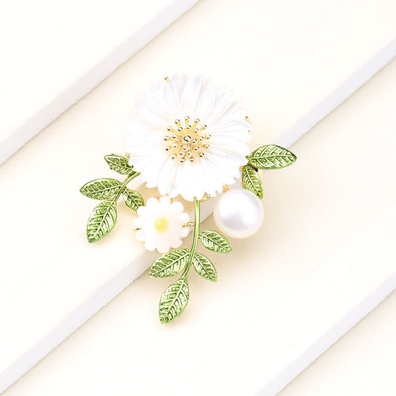 Broche romántico de margaritas y perlas para mujer