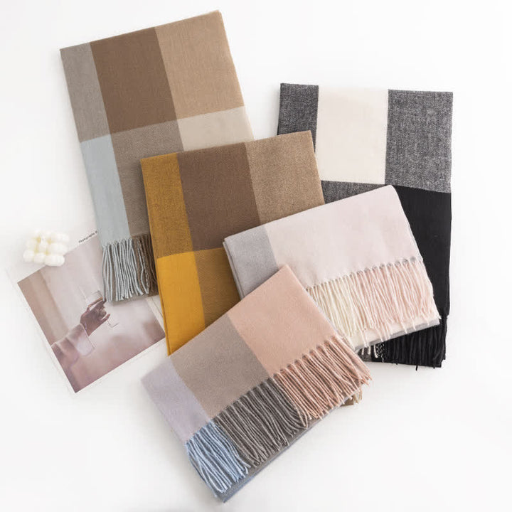 La delicada bufanda a cuadros es delicada, esponjosa y mantiene la temperatura, y tiene una sensación suave y sedosa, como la piel de un bebé. Al caminar de un lado a otro con el viento, irradia libertad y tranquilidad, llena de encanto y confianza al instante.