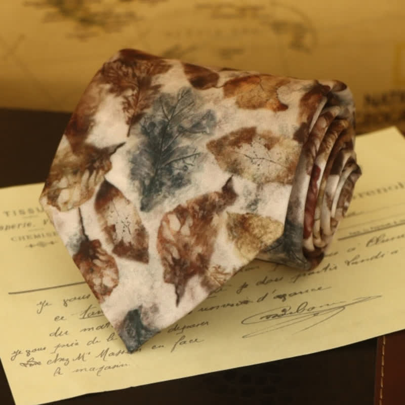 Las hojas que caen cambian de color, el patrón intrincado y detallado solo se suma a lo memorable e impresionante que es esta corbata. La corbata tiene un aspecto muy vintage que se puede usar de manera formal o informal para cualquier ocasión.