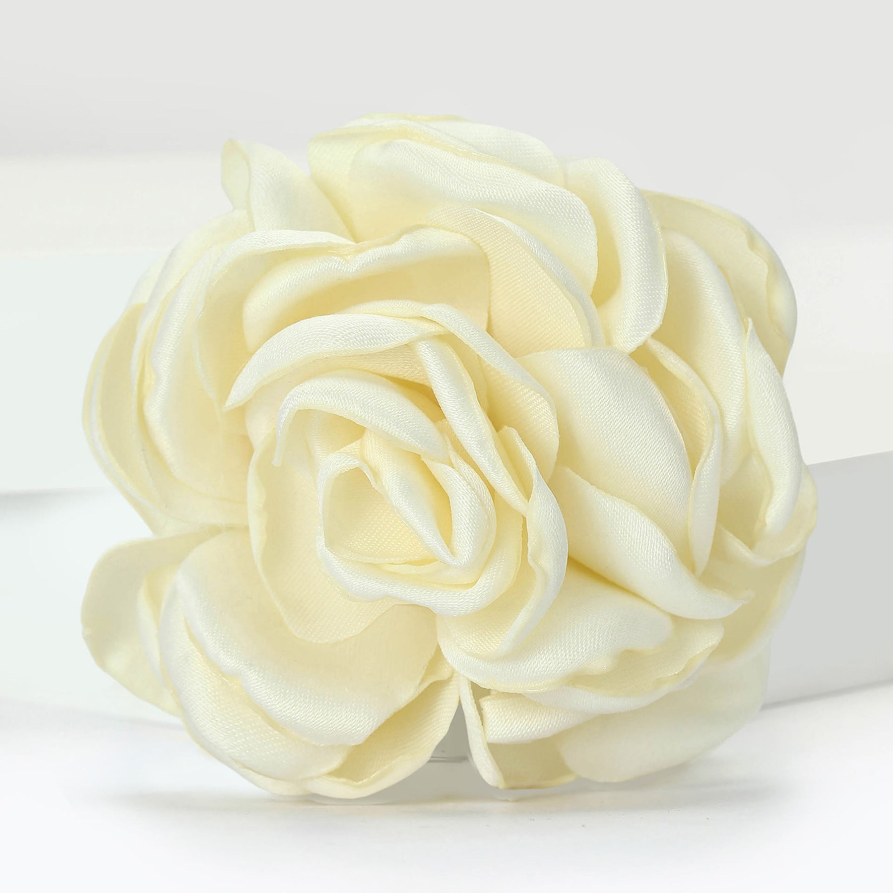 - Estos broches con temática de rosas toman la elegante silueta de la rosa de satén como su diseño principal, elaborado a partir de una tela de satén suave y brillante que irradia una textura suave.