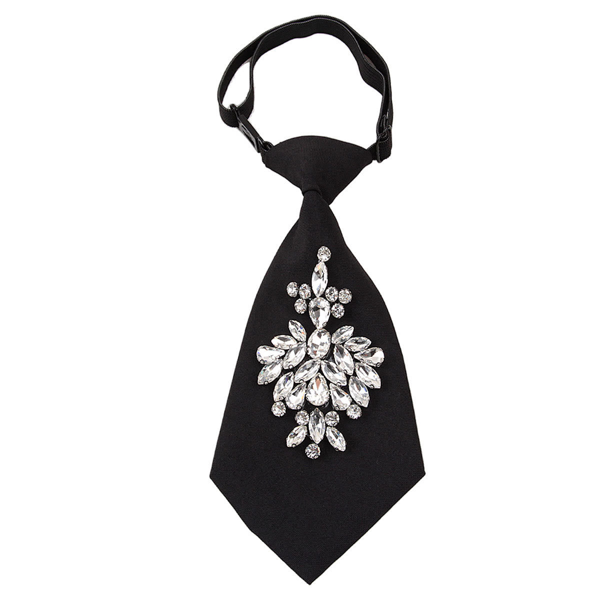 - Esta elegante corbata corta presenta brillantes detalles de diamantes de imitación y un diseño preatado para una sofisticación instantánea.