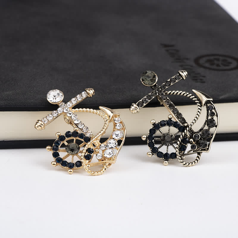- Este es un hermoso broche de ancla azul marino que tiene un detalle de diamantes de imitación en la parte superior del ancla.