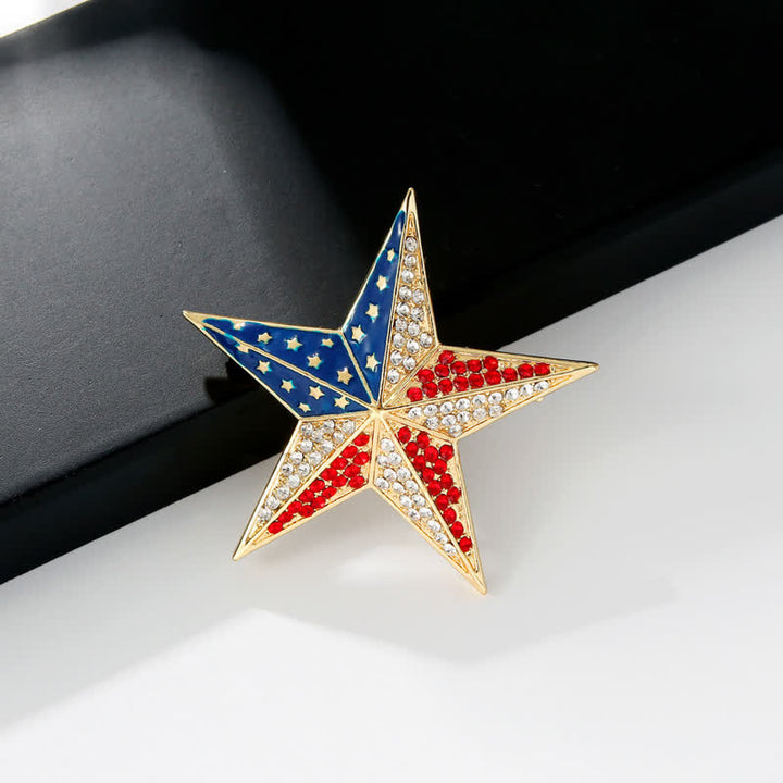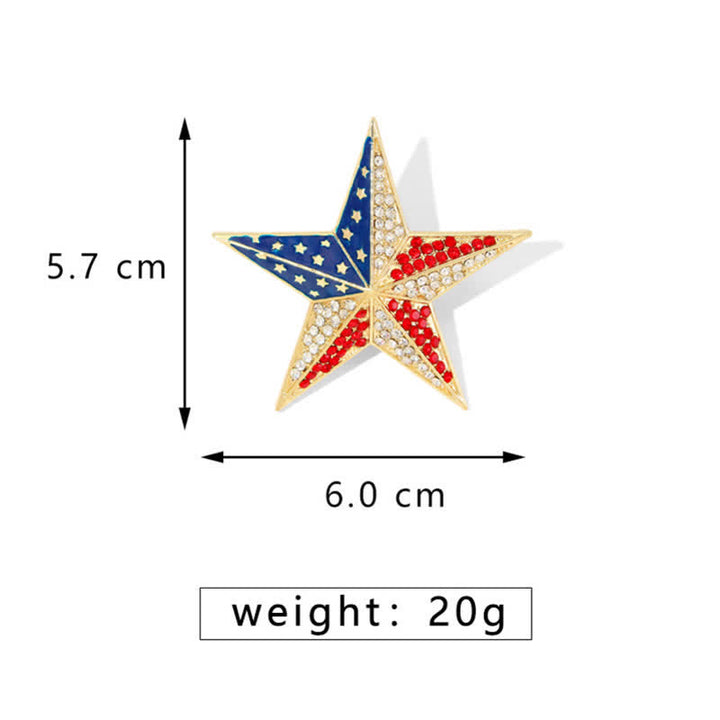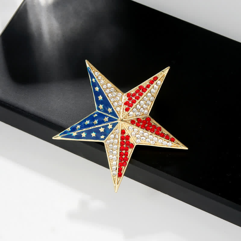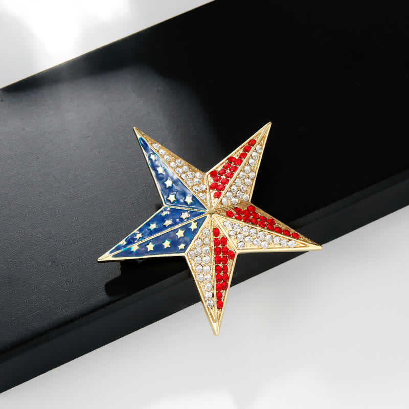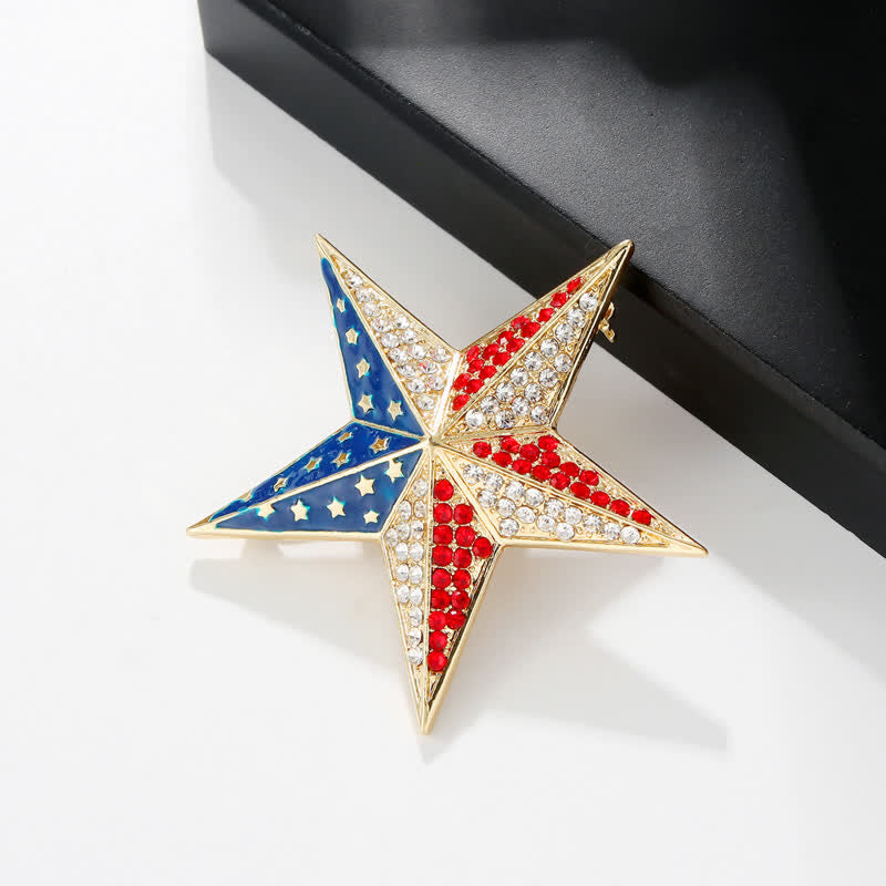 Broche patriótico con bandera estadounidense y estrellas rojas, blancas y azules