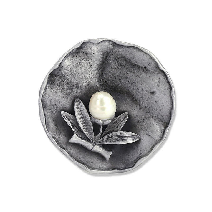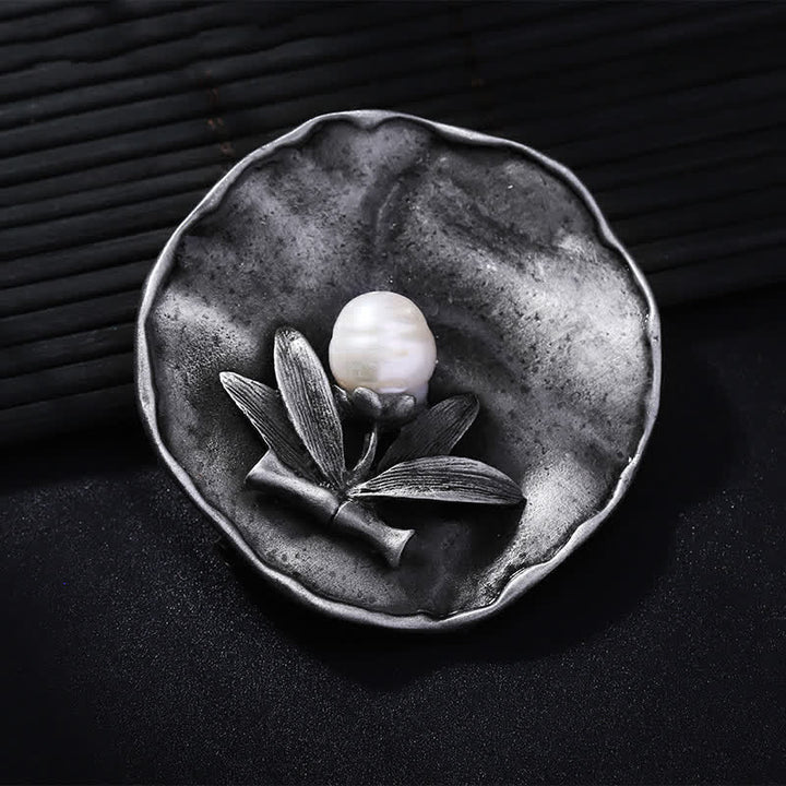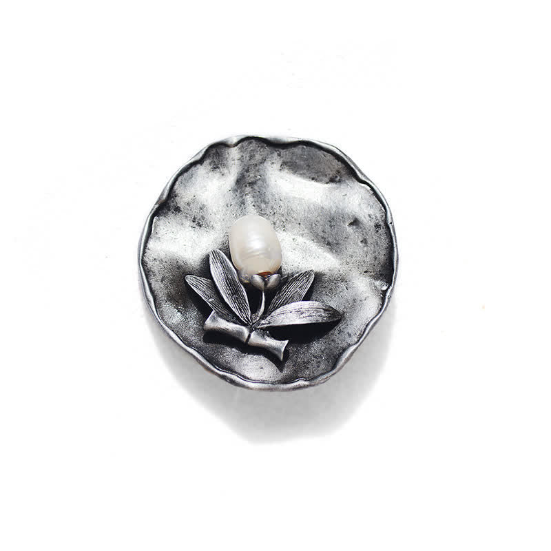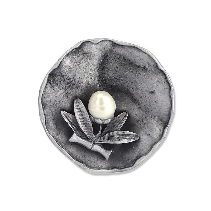 Broche retro redondo de bambú con decoración de perlas para mujer