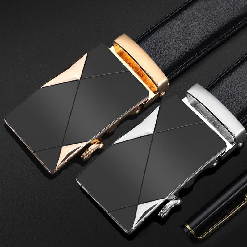 Cinturón de cuero con hebilla automática y relieve de lujo para hombre