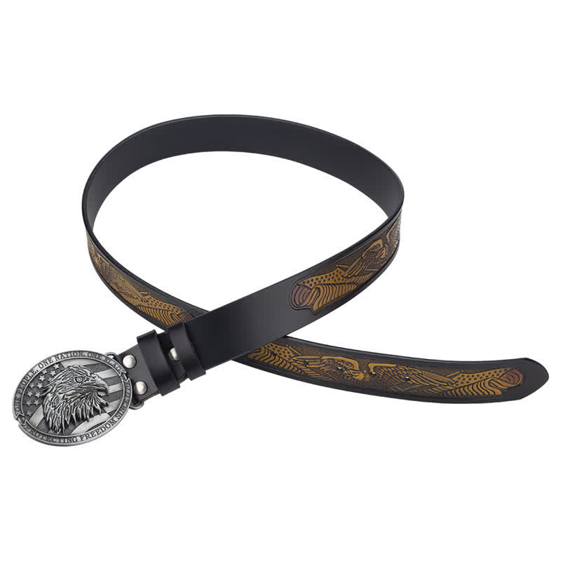 Cinturón de cuero con hebilla de bandera estadounidense y cabeza de águila calva para hombre