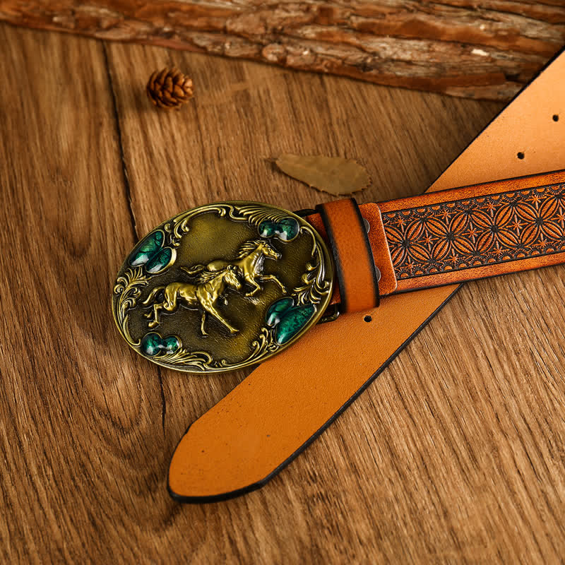 La intrincada hebilla de doble caballo con diseño de decoración de gemas falsas irradia autenticidad y atractivo vintage, mostrando su estilo personal y confianza, agregará un toque encantador a cualquier atuendo.