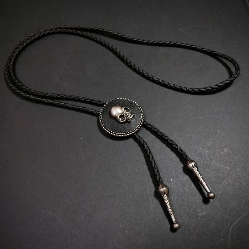 Esta corbata bolo está bellamente diseñada con un relieve de cabeza de calavera en la superficie y adornada con cuero PU colorido, vintage y elegante, te hará lucir más deslumbrante, agregando una sensación más elegante.