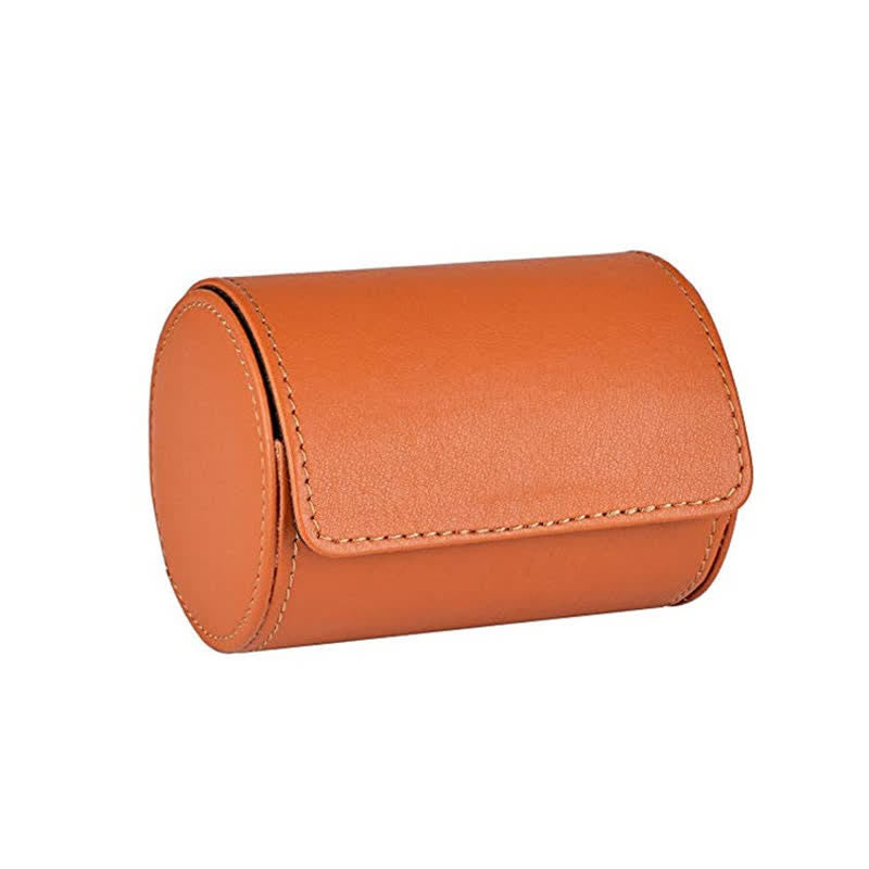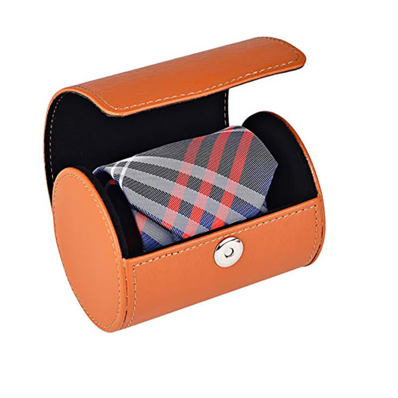 Estuche de cuero de PU con caja de almacenamiento para corbatas redondas de color naranja