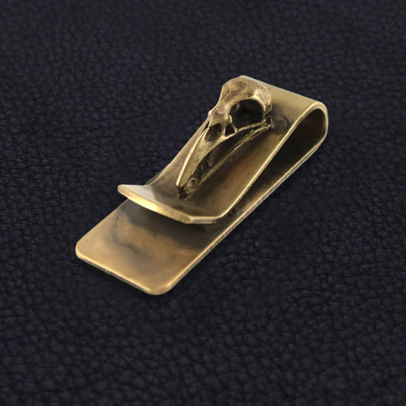Clip para billetes portátil y creativo de latón con forma de calavera de pájaro