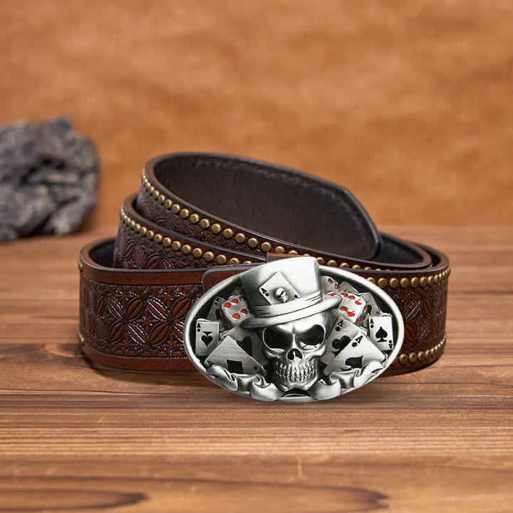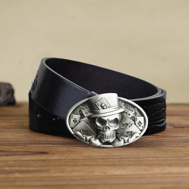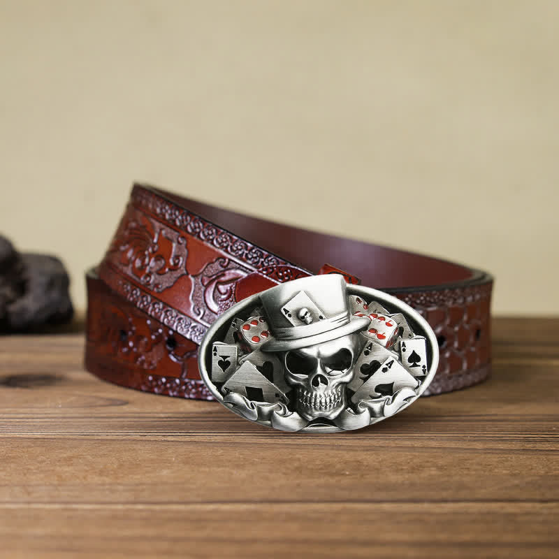 Es una hebilla de cinturón impresionante con detalles tallados de calaveras, dados y póquer. Adecuada para cualquier festival y regalo para cualquier ocasión, esta hebilla de cinturón puede traerte suerte.