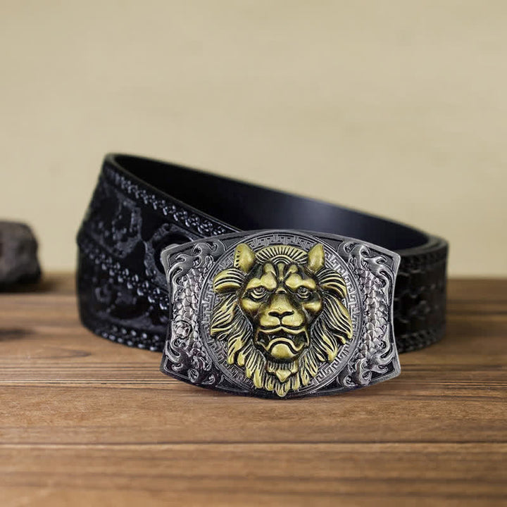 - Es una obra de arte en sí misma. La hebilla luce una intrincada insignia de león en tono dorado.