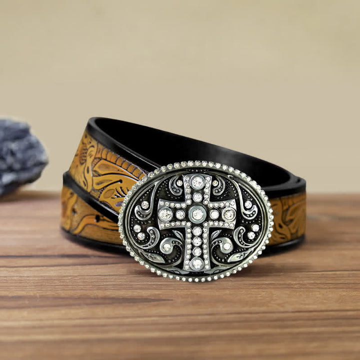 Esta hebilla con actitud tiene una cruz central con detalles de diamantes de imitación transparentes. Es el accesorio decorativo perfecto para cualquier ocasión y ofrece un estilo único. Una manera perfecta de mostrar tu fe.
