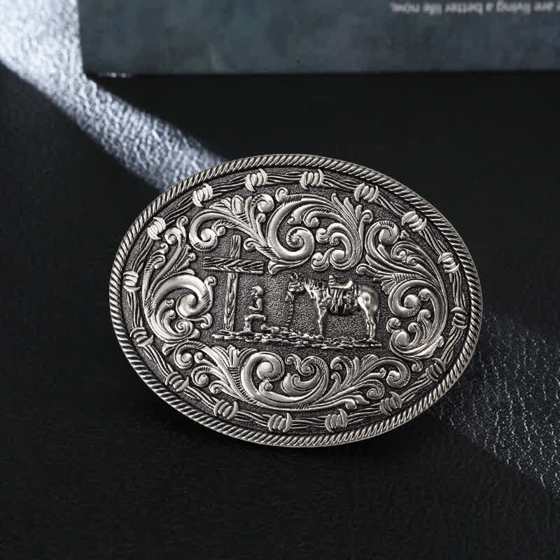 La hebilla del cinturón occidental está diseñada con un jinete religioso y su caballo, que simboliza la fe y la protección. Clásica y moderna para hombres y mujeres, niños y niñas.