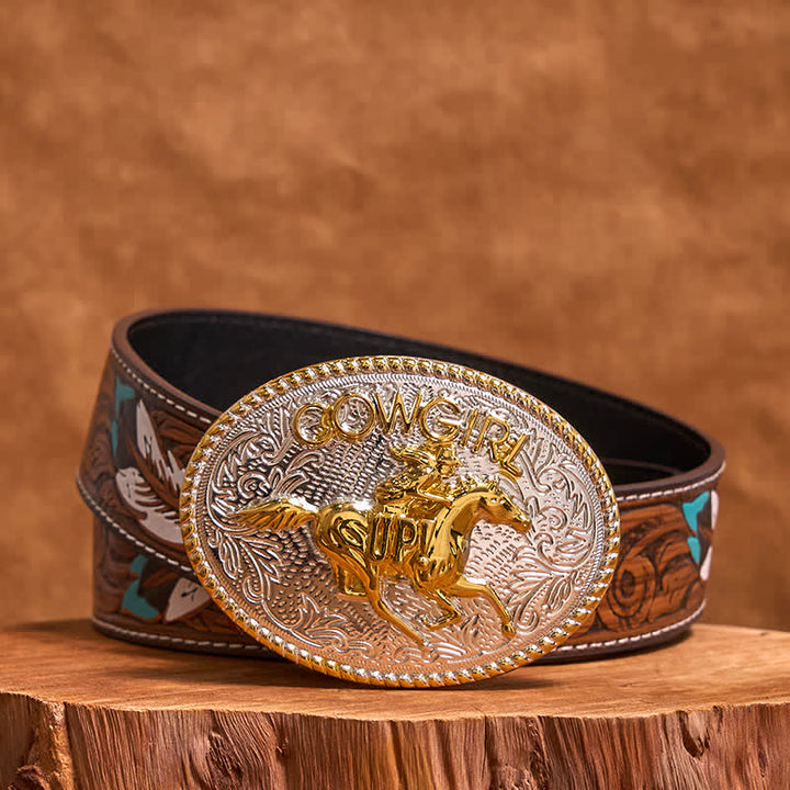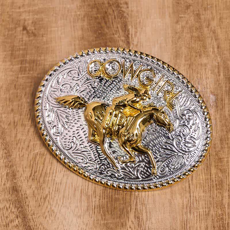 Adopta plata brillante combinada con tono dorado, esta hebilla de cinturón de vaquera occidental de rodeo es única y elegante, resaltará su personalidad y se convertirá en un punto culminante de su atuendo general.
