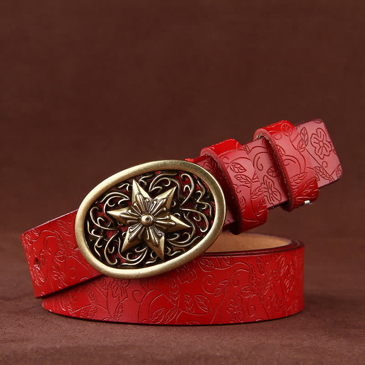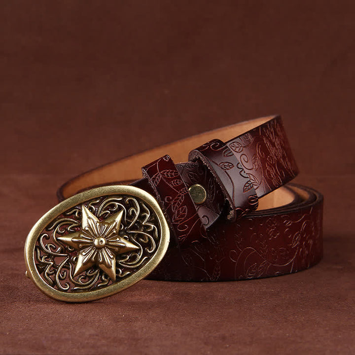 Este cinturón, con una hebilla de estrella vintage y un delicado diseño de flores en relieve, tiene un aspecto bonito y brillante. Es cómodo de llevar y también puede mostrar un gusto único.