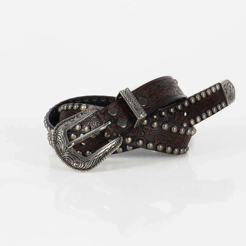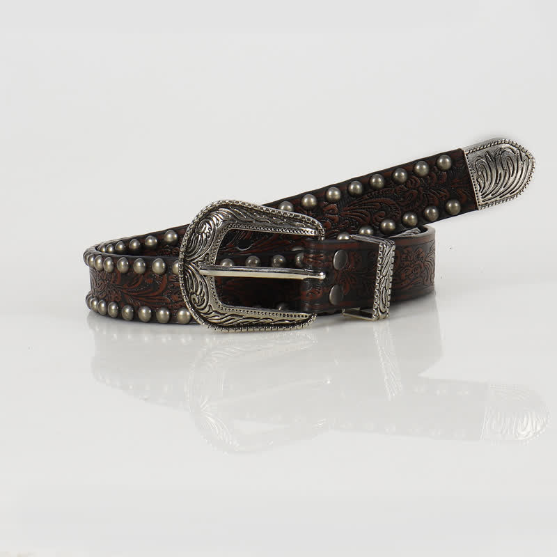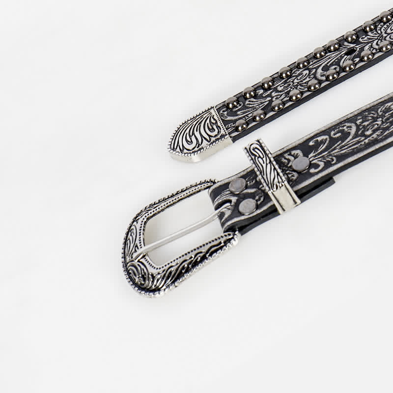 La hebilla de aguja con flores grabadas y los remaches de dos filas le dan un toque agradable a tu atuendo. El diseño moderno y clásico nunca pasa de moda. No solo sujeta tus pantalones, sino que también resalta tu cintura a la perfección.