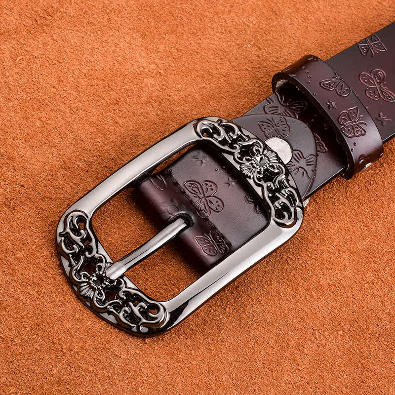 Este clásico cinturón de cuero para mujer ofrece un aspecto icónico en relieve que nunca pasa de moda, pero tiene los detalles y la moda suficientes para destacarse.