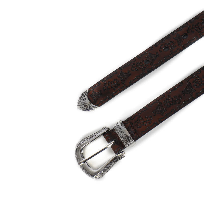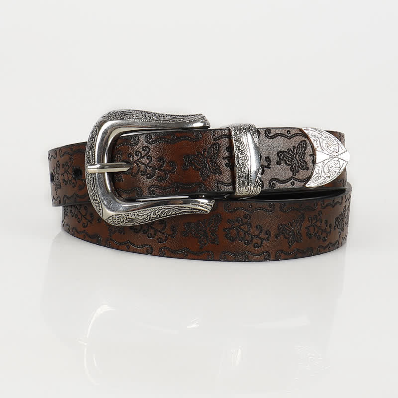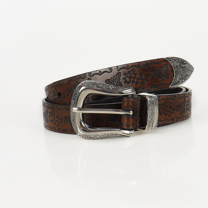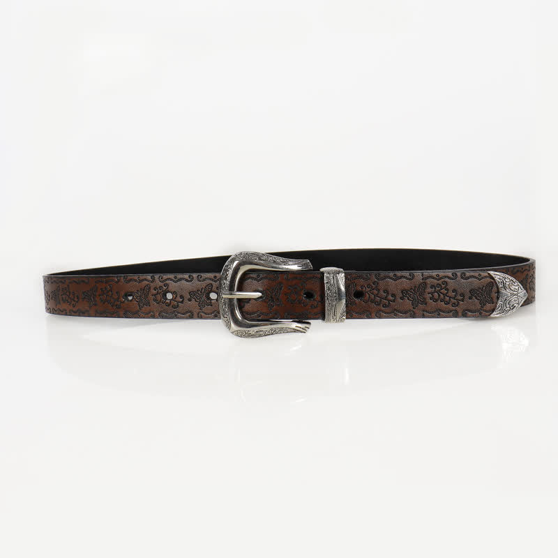 Este cinturón de cuero ajustable está diseñado para adaptarse a diferentes tamaños de cintura, lo que proporciona un ajuste perfecto para todos. Su grabado único y la atención al detalle lo convierten en un accesorio funcional.