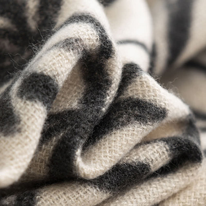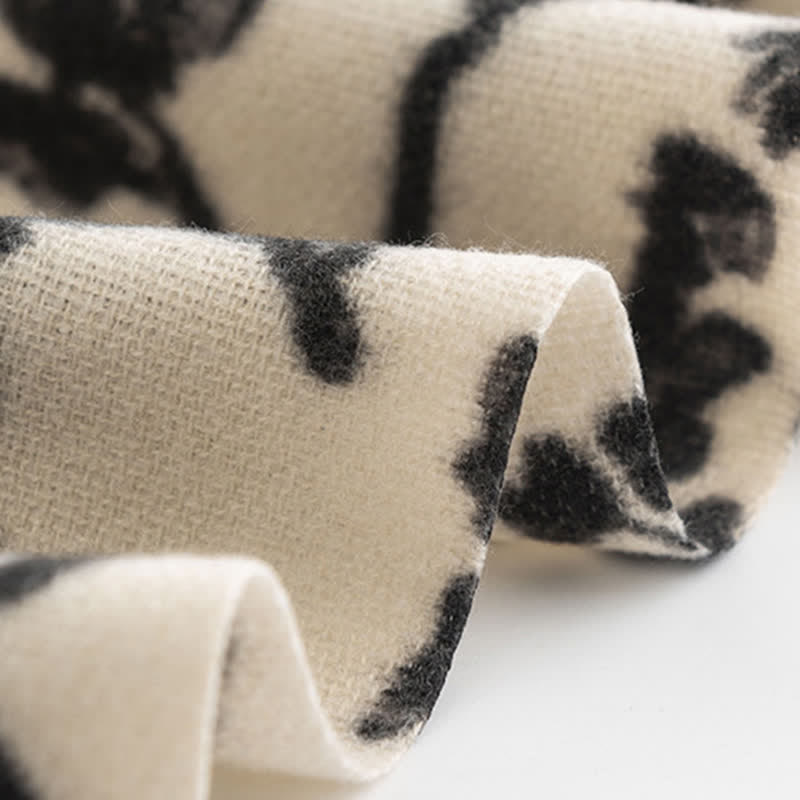 La bufanda está hecha de tela suave y acogedora, es liviana y tiene un tacto agradable como el de una bufanda de cachemira. Nos gusta usarla como chal para que se vea todo el diseño de las flores, pero es igual de hermosa si la usamos sobre los hombros o arremangada como una bufanda grande.