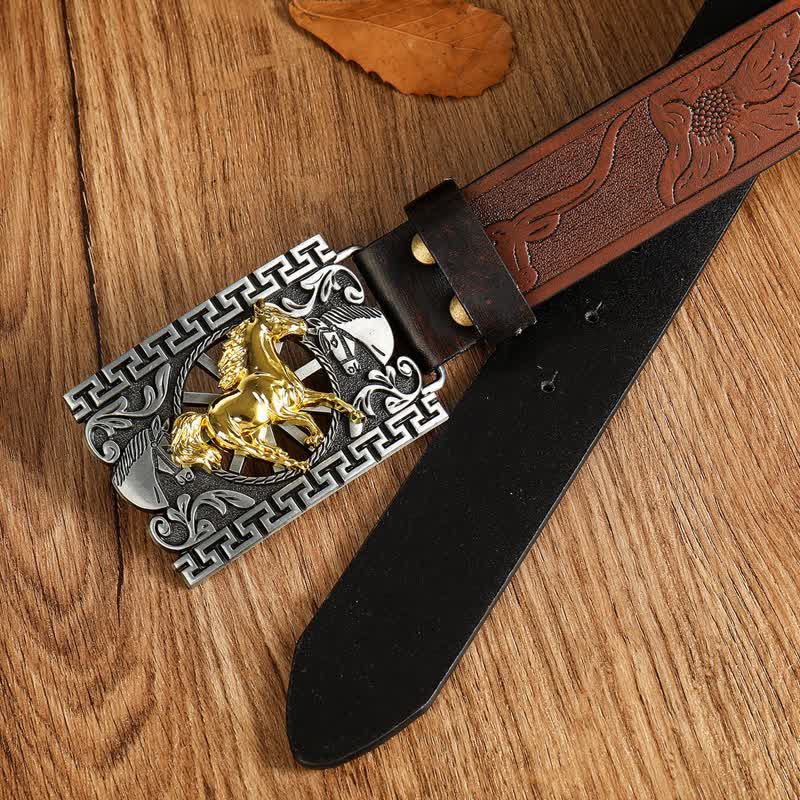 Junto con el cinturón de hebilla grande, la hebilla del cinturón presenta un diseño de caballo vintage en oro o plata, clásico y llamativo, que muestra sus encantos y sentimientos occidentales, haciéndole destacar entre la multitud.